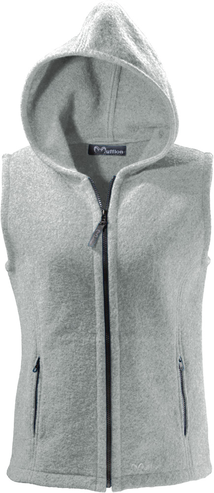 Kuschlig warme taillierte Damenweste mit Kapuze aus 100 % weicher und warmer Merinowolle.