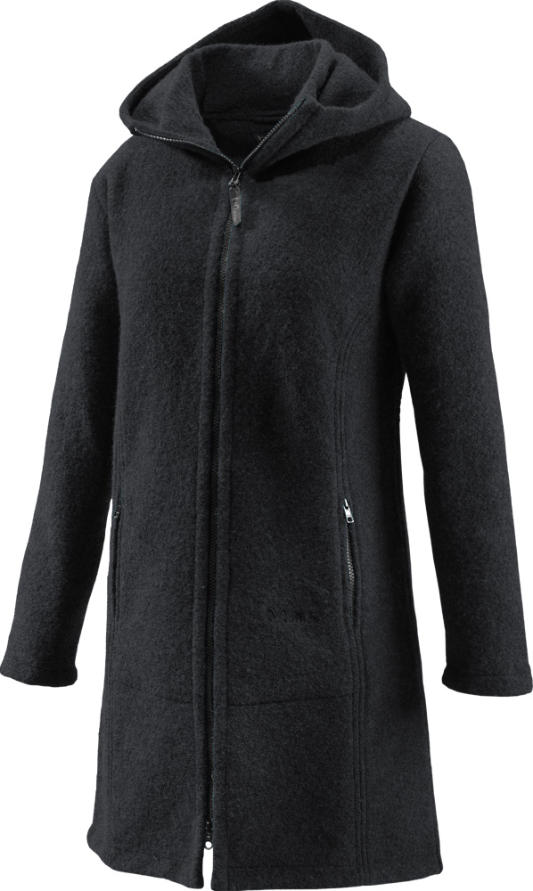 - Damenmantel mit Kapuze und innenliegenden Stehkragen