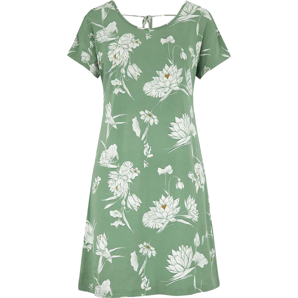 Padma bedeutet auf Hindi „Lotus“ und steht oft für göttliche Schönheit und Reinheit. Das Padma-Kleid mit Nackenband ist von vorne ein praktisches T-Shirt-Kleid, hinten zeichnet es sich durch einen wunderschönen V-Ausschnitt und ein Halteband am Nacken aus. Das Design dieses Kleides ist von seinem Namen inspiriert, der auf Hindi „Lotus“ bedeutet. Es ist mit einem sanften, kaskadenartigen Lotusblumen-Print bedruckt, der die schmeichelhafte Silhouette unterstreicht. Die Mischung aus Bio-Baumwolle, Modal® und Elasthan verleiht dem Stoff ein weiches und angenehmes Tragegefühl. Subtile, elegante Akzente wie die kleine Münze, die mit dem Endlosknoten von Sherpa geprägt ist, lenken den Blick auf die femininen Züge dieses Kleides. Ob beim Erkunden des Geländes oder beim Ausgehen zum Abendessen, das Padma-Kleid mit Nackenband ist mit seiner schlichten Schönheit eine vielseitige Option.