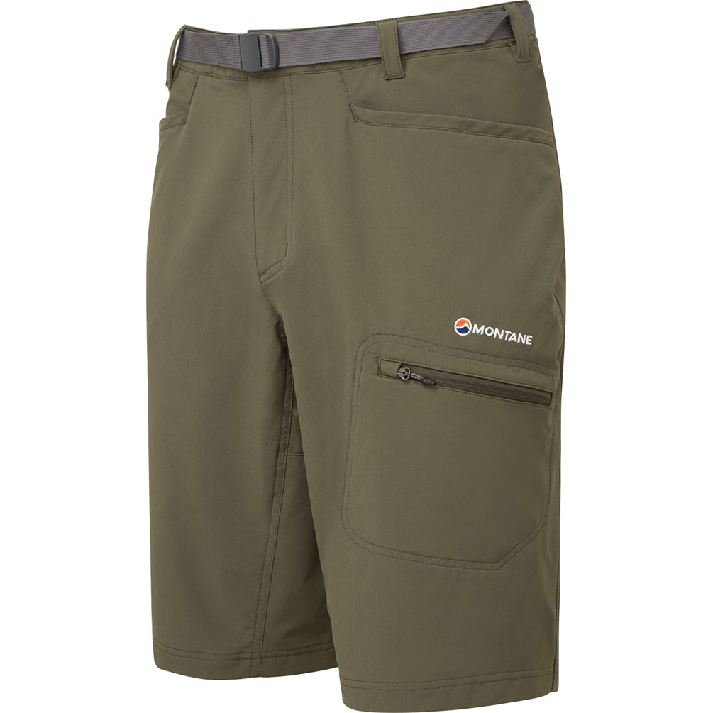 Der Sommer ist warm, der Sommer ist sonnig und der Sommer macht Spaß im Gebirge! Aber natürlich nicht, wenn Dir fürchterlich warm ist. Deswegen gibt es ja die Dyno Stretch Shorts von Montane! Diese Shorts eignen sich super als Allrounder im Sommer vor allem für das Gebirge. Wander, Trekking, Bergsteigen, alles kein Problem für die Dyno Stretch Shorts. Damit die Shorts alles aushalten, was Du vorhast, wurde Granite Stretch Lite Material verwendet. Es ist schön elastisch, aber gleichzeitig strapazierfähig. Da es auch im Sommer einmal ordentlich winden kann und vor allem ein Sommerregen nicht unwahrscheinlich ist, wurde die Hose mit der DWR Beschichtung versehen. So weist sie Wind und Wasser dauerhaft ab. Damit auch der Komfort nicht zu kurz kommt, ist das Futter aus feinem, angerautem Mikrofleece am rückseitigen Bund gefertigt. So kann dort nichts unangenehm kratzen. Der aktive Schnitt macht große Steigschritte möglich. Um die Dyno Stretch Shorts zu verschließen, nutzt Du den Knopf mit Hosenschlitz mit YKK Reißverschluss. Noch besser individualisieren kannst Du die Hose dank des abnehmbaren und leichten Gürtels. Für alle möglichen kleinen Gegenstände stehen Dir einige Taschen zur Verfügung. Zum einen sind da zwei praktische Eingrifftaschen mit Netzfutter. Zum anderen ist da die Tasche am linken Oberschenkel mit dem umgekehrten YKK Spiralreißverschluss. Sogar eine Gesäßtasche mit Netzfutter auf der rechten Seite gibt es noch zusätzlich. Genieße den Sommer in vollen Zügen mit der Dyno Stretch Shorts von Montane!
