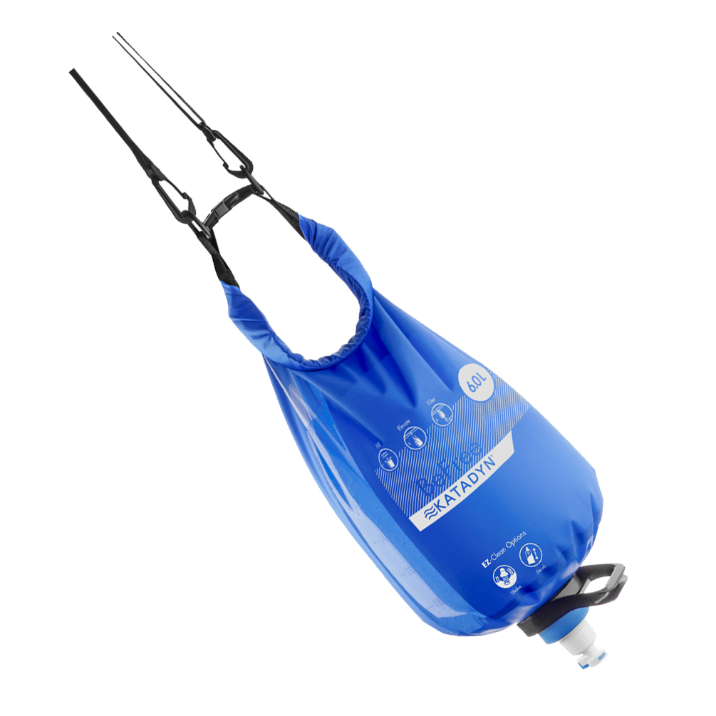 Das schlanke, faltbare Katadyn BeFree Gravity 6L Filtersystem nutzt die Schwerkraft,