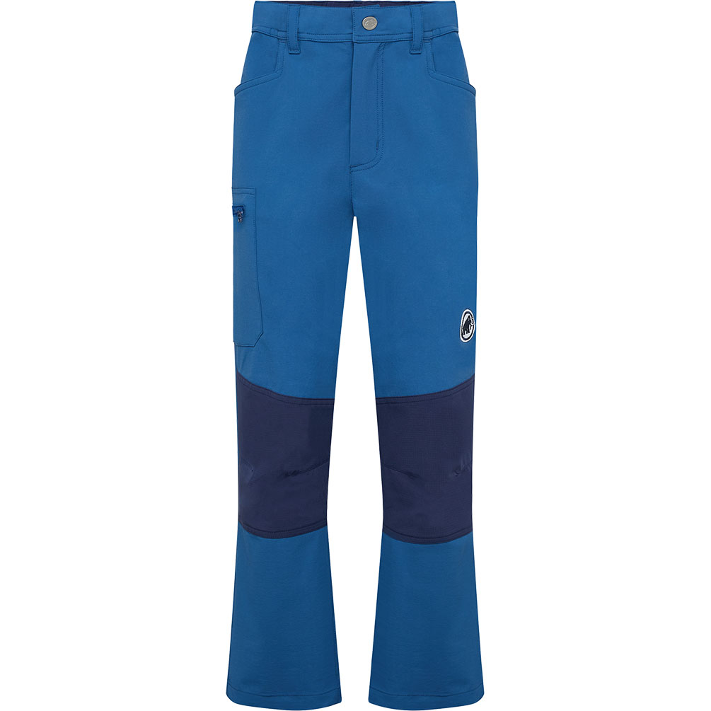 Tree climbing, muddy hiking trails, and via ferratas – these kids' softshell pants are made for wild days in the great outdoors. They're made from durable, lightweight polyamide so your little one can enjoy the great outdoors in absolute comfort. When scrambling over rocks, ripstop reinforcements on the seat and knees offer additional protection against abrasion. The elastic waistband with an integrated adjustment system and belt loops allow for individual adjustment of the fit. A zippered fly with snap fastener ensures the pants always fit well. Two side pockets and a zippered thigh pocket offer ample storage for small essentials. This makes the versatile Taiss SO Pants a trusty companion for your next outdoor adventure.