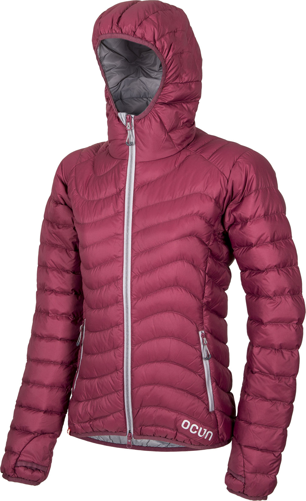 - Feather / double-sided zip / YKK zip / 3D fit / lightweight / ergonomic hood / compress pocket / down sleeve hole / inner pocket for climbing shoes / 100% recycled material