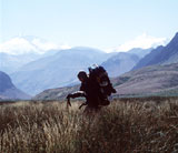 Am Beginn der Tour müssen 35 kg Gepäck bei bis zu 30°C über endlose staubige Pistenkilometer geschleppt werden, doch das Ziel vor Augen, überwinden wir die öde Steppe.